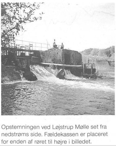 I selve opstemningen ved Løjstrup Mølle Dambrug, som ligger knap 2 kilometer fra Lilleåens udløb i Gudenåen, opstillede vi sidst i februar 2000 en fælde af Wulff-typen Denne type svarer i princippet til en ålekiste. Vandet falder ud over opstemningen og ned på et gitter, som opfanger alle nedtrækkende fisk, men lader vandet passere igennem. Fiskene glider derefter ned ad gitteret og hen i en udløbskanal, der er forbundet til en fældekasse, hvori fiskene opbevares indtil registrering. Fra undersøgelser i foråret 1999 var det blevet klart at afgitringerne ind til fødekanalerne på Løjstrup Mølle Dambrug, på trods af, at de er lovlige, ikke var tilstrækkelige til at holde smoltene ude af fødekanalerne.