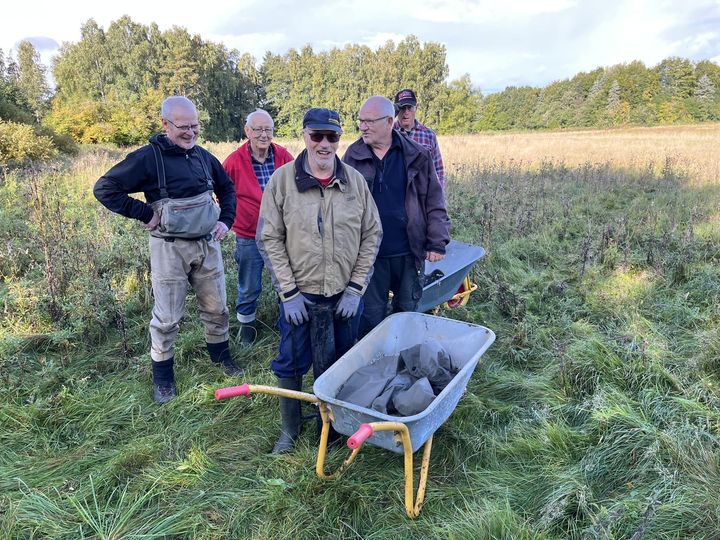 Så fik Bjarne aktiveret Karl, Kaj, Preben, Carsten og John til at fjerne hegn langs Lilleåen på Christian Malmkjærs grund således at der nu er fri adgang til åen fra Balle til Vester Ringvej. Tak til Christian og arbejdsholdet.