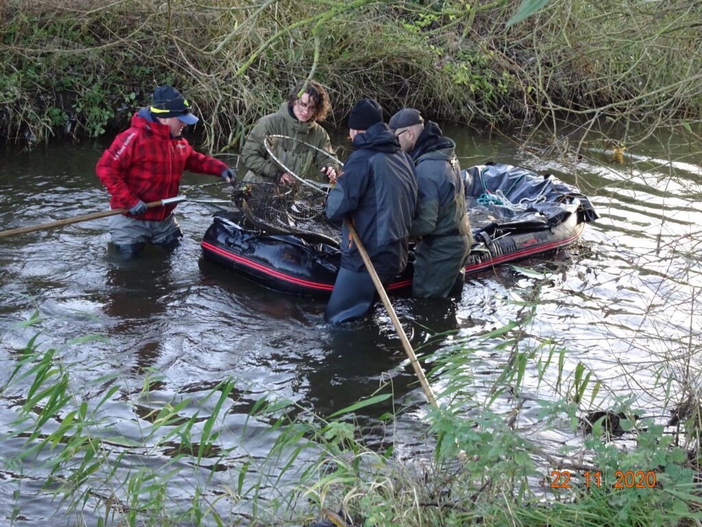 Vi leverede igen moderfisk til Gudenåens Ørredfond, denne gang skulle vi kun el-fiske knap 600 meter for at have 37 hunfisk og 23 hanfisk. GØF havde bestilt 25 af hver. Året før, i 2019 måtte vi kæmpe os igennem næste 7 Km for at fange et mindre antal. Bjarne Bach fra LSF bemærkede tørt at det var nødvendigt at opstille foderautomater med den store bestandtæthed vi oplevede i åen. Så kom der lige en lille påmindelse om tidens alvorlige situation. En af deltagerne meldte dagen tilbage at han var testet positiv for corona, så vi havde lige et par mand der måtte til test, heldigvis var ingen smittede.