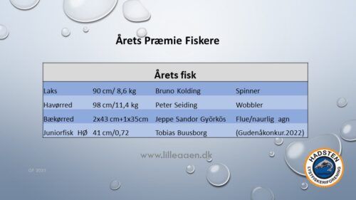 Han fremlagde også en oversigt over Årets Fisk, der ligeledes kan ses på foreningens hjemmeside.