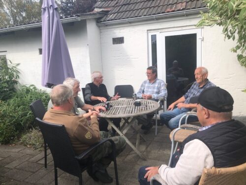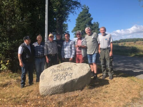 Vi mødtes som altid ved pølsevognen over for Hagebro Kro. Her indtog de fleste 1 fransk hotdog eller 2 og herefter drog vi afsted til Pension Højbo hvor Mogens Styhr tog godt imod os og vi blev installeret på vores værelser.