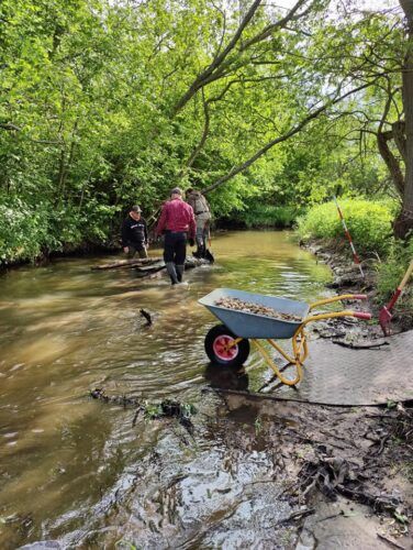 Vi arbejder i vandplejen båden med vandløbsforbedringer og med at forbedre og vedligeholde adgangen til vores fiskevand.